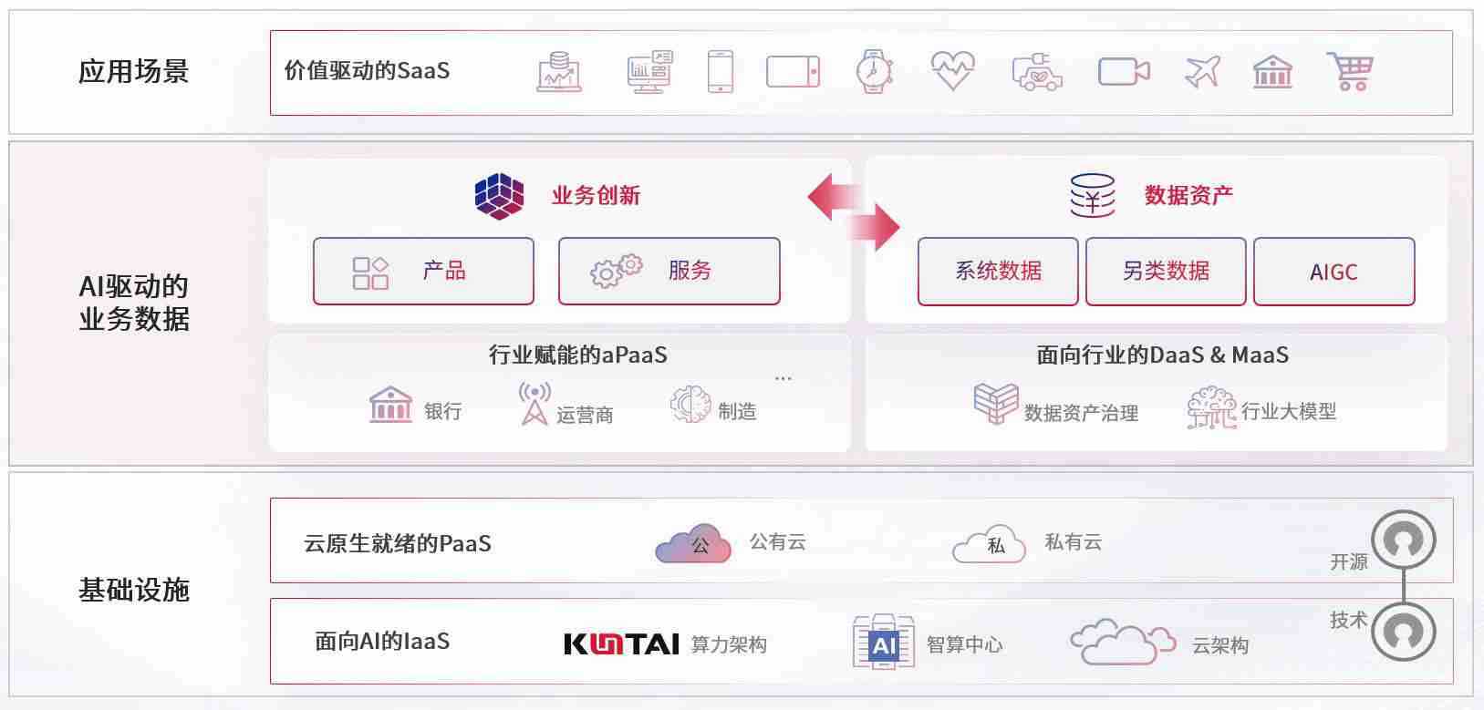 数字时代,,,,围绕企业数字化转型的关键要素,,尊龙数码开创性的提出数云融合战略和技术体系框架,,,着力在云原生、、、数字原生、、、、AI原生和信创产业上架构产品和服务能力,,,为处在不同数字化转型阶段的快消零售、、、、汽车、、金融、、、、医疗、、、、政企、、、、教育、、、运营商等行业客户提供泛在的敏捷IT能力和融合的数据驱动能力,,构建跨界融合创新的数字业务场景和新业务模式,,,助力企业级客户建立面向未来的核心能力和竞争优势,,全面推动社会的数字化、、、、智能化转型升级。。。。